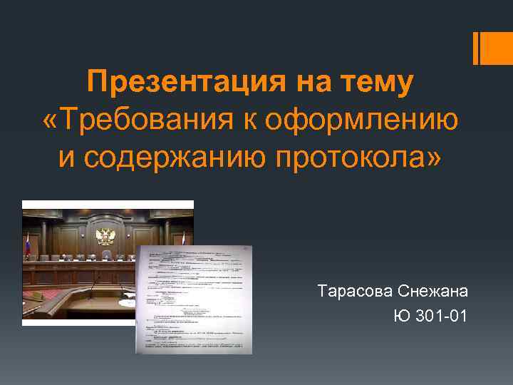 Презентация на тему «Требования к оформлению и содержанию протокола» Тарасова Снежана Ю 301 -01