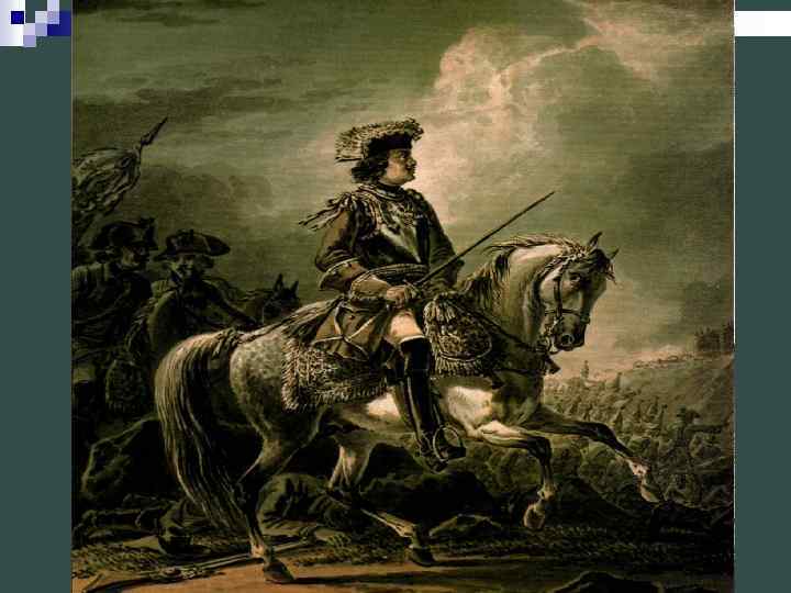 Военная реформа (суть): комплектование армии осуществлялось за счет рекрутских наборов; n увеличилась численность стрелецких полков; n для подготовки офицеров были учреждены специальные школы (навигационная, артиллерийская, инженерная); n дворян посылали учиться военному делу за границу; n дворяне, прежде чем стать офицерами, обязаны были нести службу солдатами в гвардейских полках; Итог: Петру I удалось за короткий срок создать мощную армию и морской флот. n