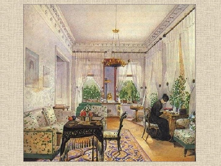 «Тучи» . Художник Ф. Константинов В начале мая 1840 г. , в день отъезда из С. -Петербурга на Кавказ, Лермонтов был у Карамзиных; стоя у окна и любуясь тучами, плывшими над Летним Садом и Невой, он набросал свое знаменитое стихотворение «Тучки небесные, вечные странники» .