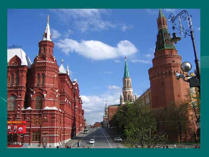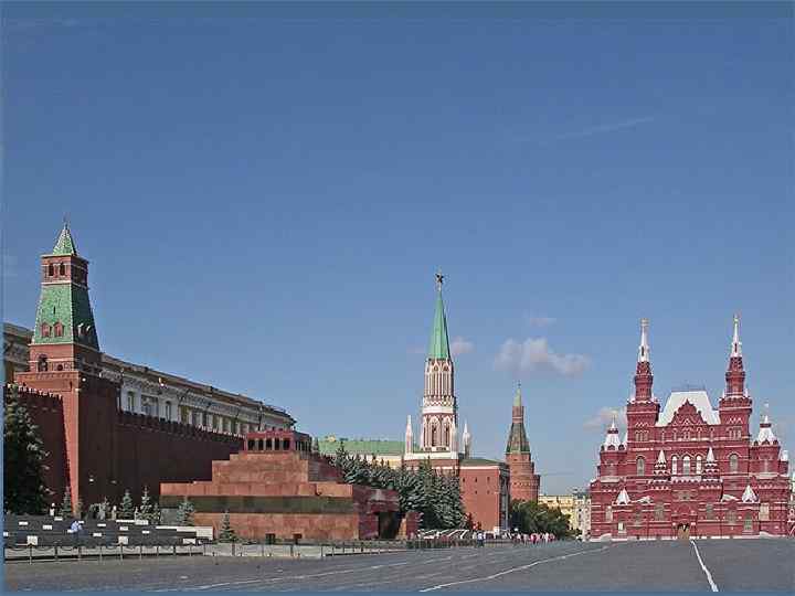 The Architectral centre Red Square was for a long time the public meeting place. There is a well-known monument to Minin and Pozharsky here. The sound of Kremlin Clock is known to all those who listen to the Moscow radio.