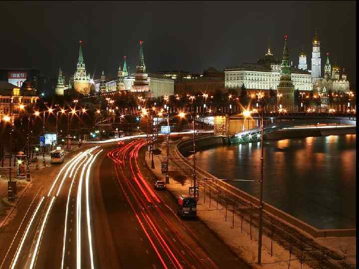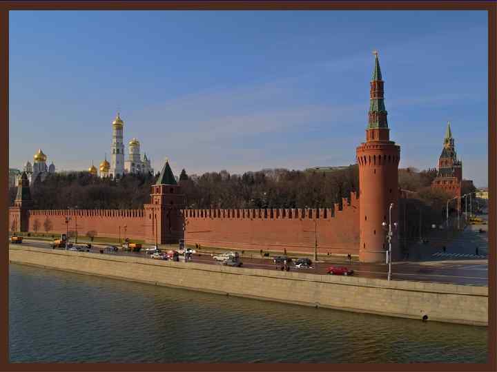 Across Moscow flows the Moskva-river. The Kremlin was a magnificent fortress made of red brick with high walls and lots of churches on its territory. The Kremlin is the seat of the Government.