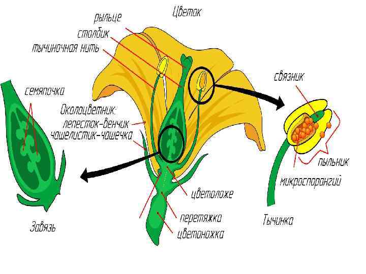 Тычинка — мужской репродуктивный орган цветка покрытосеменных растений. Пестик — часть цветка, образованная одним либо несколькими сросшимися плодолистиками; женский репродуктивный орган цветковых растений. В полости пестика расположены семязачатки. В цветке может быть как один, так и несколько пестиков. Расположены пестики обычно в центре цветка.