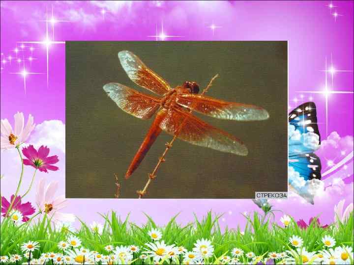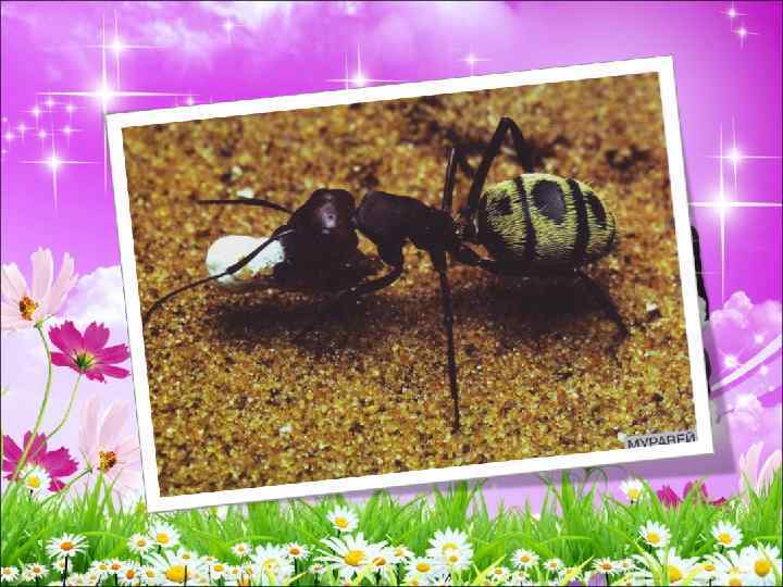 • 4. Самым большим насекомым был огромный скорпион. обитавший в морях 400 миллионов лет тому назад (в силурийский период), достигал в длину 2, 5 метра. 300 миллионов лет тому назад существовал вид стрекоз с размахом крыльев 60 - 80 сантиметров. Это было самое большое летающее насекомое. Её фото можно увидеть во втором пункте. 5. Максимальная скорость смыкания челюстей лошадиноголовых муравьёв составляет 180 км/ч и на данный момент это самое быстрое движение конечности животного, зафиксированное на видео. Средняя продолжительность укуса – 0, 13 миллисекунд, что в 2300 раз быстрее, чем моргает человеческий глаз 6. Кузнечик может прыгнуть на расстояние, в 20 раз превышающее длину его тела; 7. Муравьи за одно лето (одним большим муравейником) могут уничтожить до 10 миллионов вредных насекомых. А ещё они отличные пастухи и у них есть свои «коровы» – тля, которую они пасут. • 8. А в нашей стране самый крупный жук – уссурийский дровосек (живёт в Приморском крае), его длина 11 см.