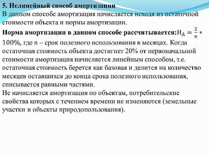 К нематериальным активам относятся компьютерное программное обеспечение, базы данных, наукоемкие промышленные технологии, прочие нематериальные основные фонды, являющиеся объектами интеллектуальной собственности. Амортизация – это метод включения по частям стоимости основных фондов в течение срока их службы в затраты на производимую ими продукцию и последующее использование этих средств для возмещения потребленных основных фондов. Амортизационные отчисления являются одним из элементов издержек производства и включаются в состав себестоимости продукции.
