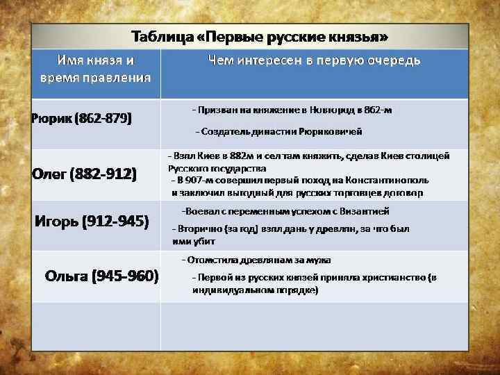 Датой образования Древнерусского государства условно считается 882 год, когда князь Олег, прозванный Вещим , захвативший после смерти Рюрика власть в Новгороде, предпринял поход Киев. Убив киевский князей Аскольда и Гира, Олег впервые объединил северные и южные славянские земли в составе единого государства.