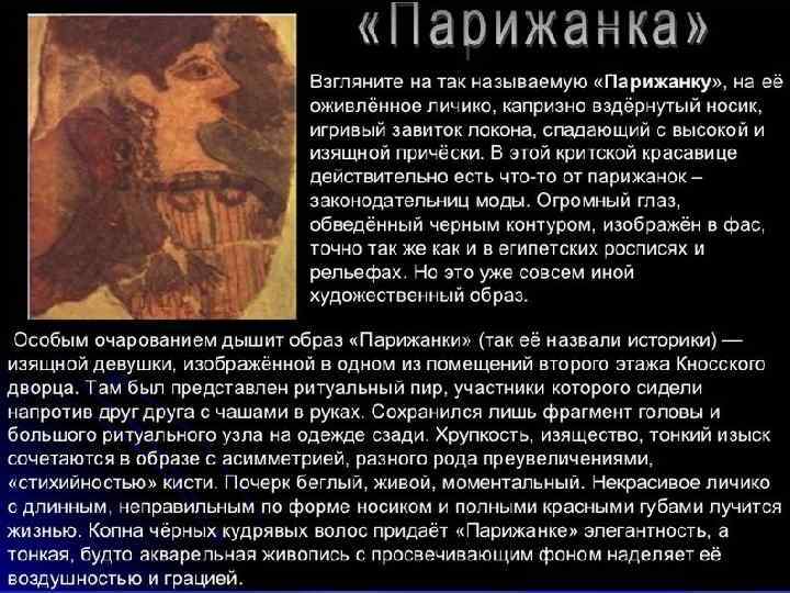Шедевром минойского изобразительного искусства является фреска «Царь-жрец»