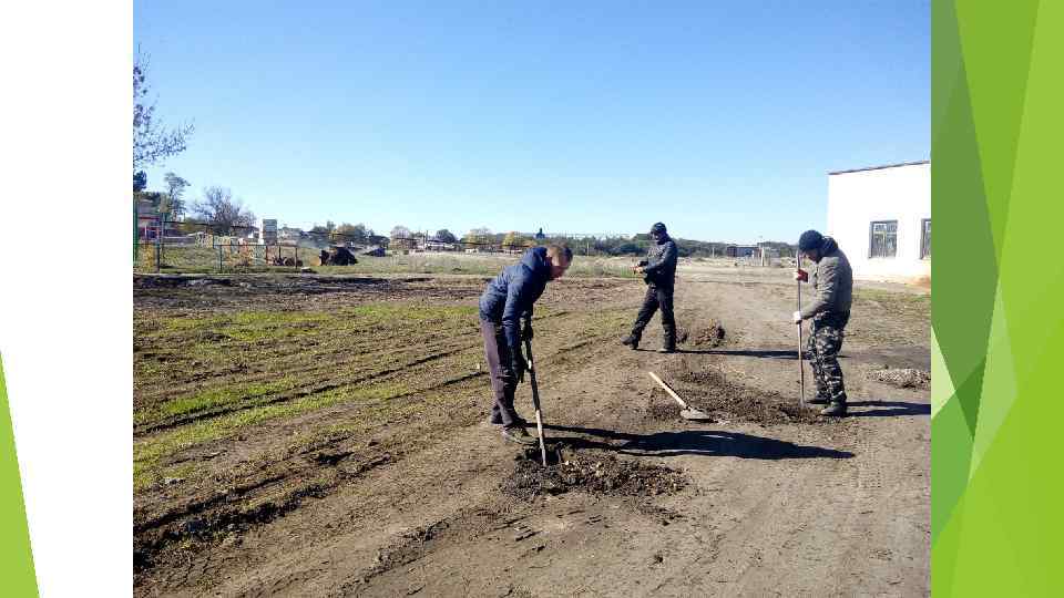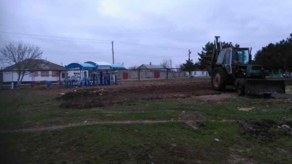 Выравнивание местности для разбивки волейбольной площадки и футбольного поля