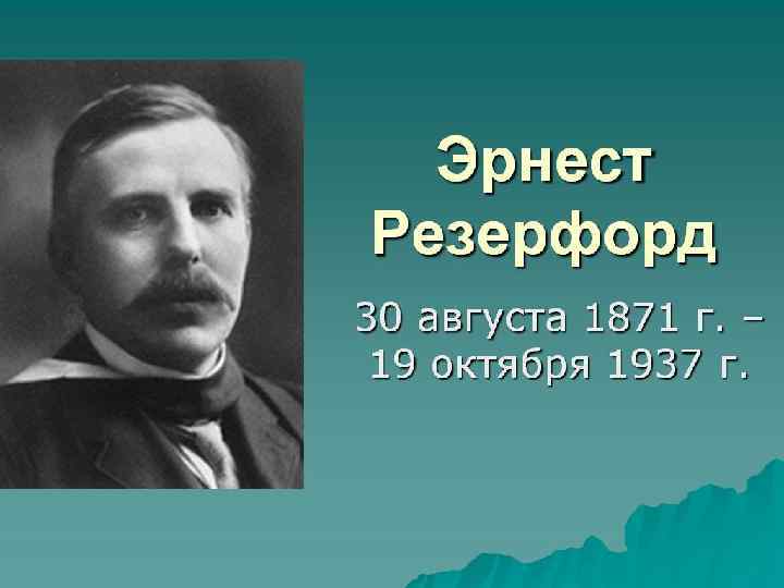Биография Английский физик Эрнест Резерфорд родился в Новой Зеландии, неподалеку от г. Нельсона. Сначала Резерфорд посещал начальную и среднюю местные школы, а затем стал стипендиатом Нельсон-колледжа, частной высшей школы, где проявил себя талантливым студентом, особенно по математике. Благодаря успехам в учебе Резерфорд получил ещё одну стипендию, которая позволила ему поступить в Кентербери -колледж в Крайстчерче, одном из крупнейших городов Новой Зеландии.