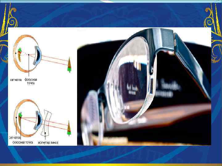 Для коррекции близорукости используются специально для этого предназначенные очковые линзы. Их оптическая сила (выражается в диоптриях) имеет знак «» , они в таком случае рассеивающие. Главный фокус впереди линзы. Поэтому световые лучи сходятся на сетчатке, что и нужно, когда речь идет о близорукости. Пару слов о материале, из которого делаются сегодня очковые линзы. Это может быть стекло. Оно достаточно прочное, устойчиво к появлению царапин, защищает органы зрения от ИК - излучения, и, в то же время, достаточно травмоопасное. И полимерные материалы, в частности, пластик, который подвержен царапанию, но, в то же время, легкий, нетравматичный. Страдающие близорукостью используют однофокальные (или монофокальные) очковые линзы. Они имеют один фокус, т. е. одну зону оптического действия. Благодаря таким линзам человек с близорукостью получает возможность хорошо видеть предметы, расположенные в дали.