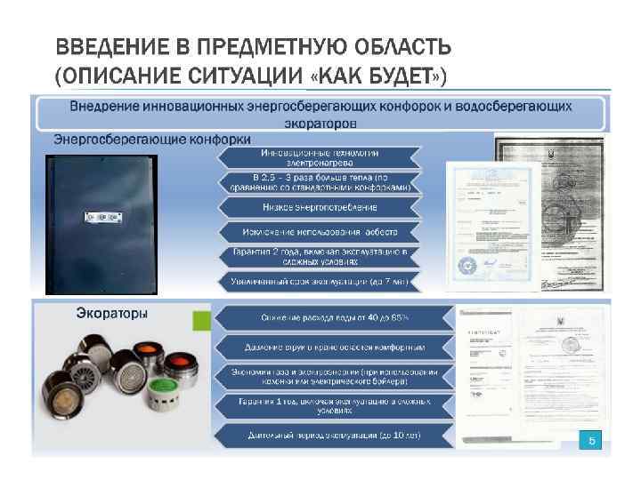 Мы собираемся провести внедрение нашей технологии энергосбережения и энергоэффективности на территории Закарпатской области. В основу мероприятий положены проверенные технологии в Европе и мире и две украинские разработки на основе которых изготавливаются энергоэффективные приборы – это аераторы и конфорки. 1, 3 млн человек • Данный проект одобрен администрацией Закарпатской области. Уже выделены объекты для выполнения пилотных проектов, определены источники финансирования из сэкономленных средств, за счет сокращения потребления энергоресурсов без изменения комфорта пользования. А также разработаны правовые и документарные формы производства расчётов в счет выполнения энергосервисных контрактов. • Вопросы, связанные с разработками , сертификацией, проверками и заключениями по эффективности, патентованием, изготовлением первых партий оборудования нами профинансированы и выполнены. При необходимости можем предоставить пакет документов от сертификатов до документов от администрации закарпатской области.
