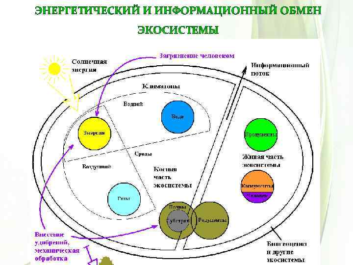 — сложная самоорганизующаяся, саморегулирующаяся и саморазвивающаяся система Основной характеристикой экосистемы является наличие относительно замкнутых, стабильных в пространстве и времени потоков вещества и энергии между биотической и абиотической частями экосистемы