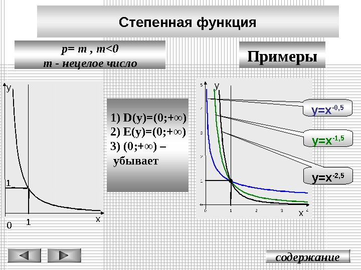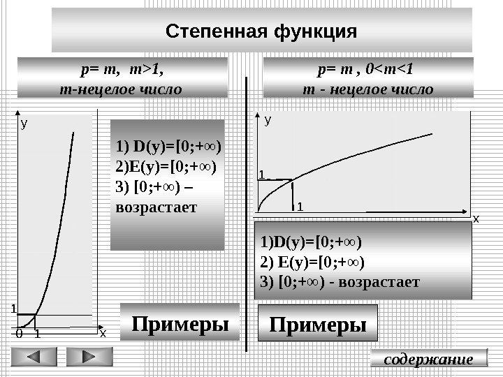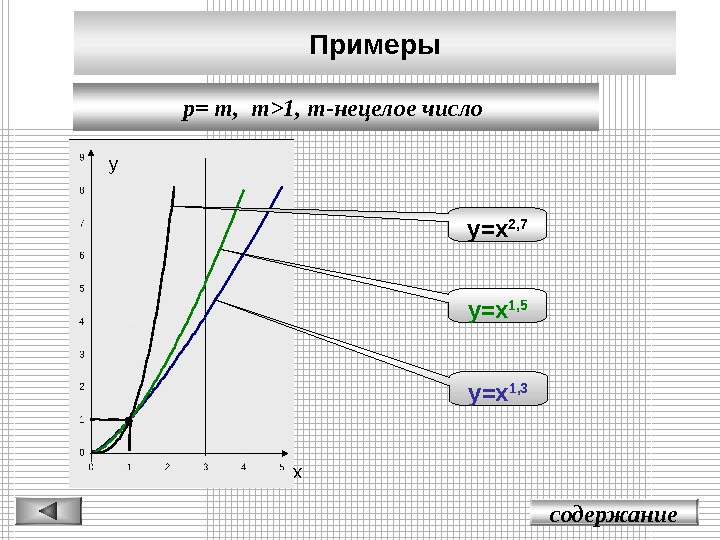 Примеры содержаниеp= m, m >1, m-нецелое число у х у=х 1, 3у=х 1, 5у=х 2,