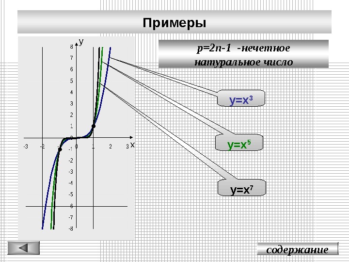 Примеры p=2n-1 -нечетное натуральное число содержаниеу=х 3 у=х 5 у=х 7у х