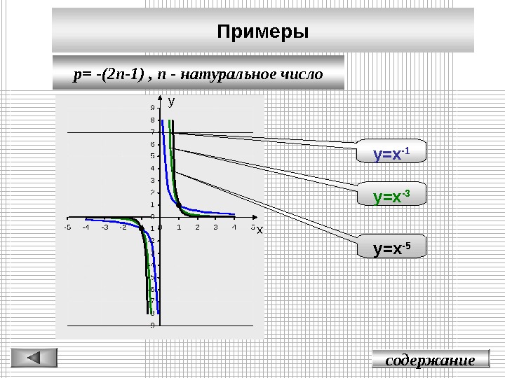 Примеры содержаниеp= -(2n-1) , n — натуральное число у х у=х -1 у=х -3 у=х —