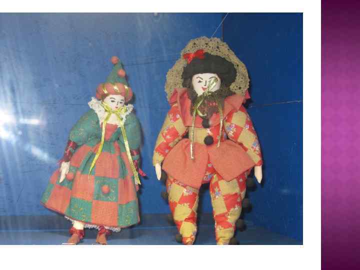 Цель: ознакомить учащихся с характерными героями старинного кукольного театра. Скарамуш, Коломбина, Пьеро. Учиться видеть роль художника при создании образа театрального персонажа Учиться видеть важное средство характеристики персонажа- театральный костюм Результатом будет умение понимать роль художника в создании театрального спектакля Учитель может предложить рассмотреть театральные персонажи : цвет, фактуру, отдельные элементы костюма и как они работают на создании образа. После этого дать задание придумать свой эскиз костюма одного из трех персонажей