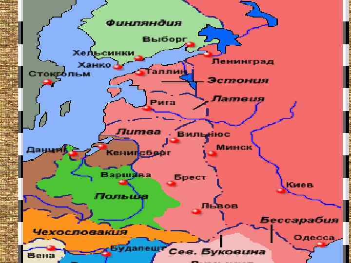 В сентябре-октябре 1939 г. Советский Союз добился от Прибалтики заключения с ним договоров о взаимопомощи. Посмотрите на карту внимательно и скажите, какое преимущества давали Красной Армии их условия?