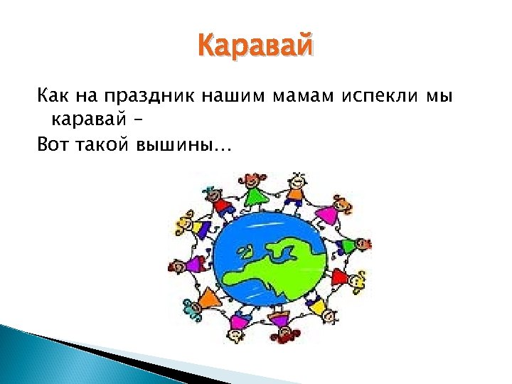 Каравай Как на праздник нашим мамам испекли мы каравай – Вот такой вышины…