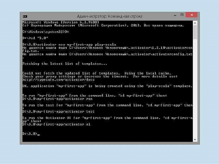 Создание нового проекта. • Для того, чтобы создать голый (пустой, чистый) проект для разработки на языке Scala , вводим в командной строке (в случае работы с Windows, советую запускать командную строку от имени администратора): • $ activator new name_project play-scala • Или для работы с Java : • $ activator new name_project play-java • В случае с Windows, в директории, на которую вы указывали в cmd, появится новая директория – проект с названием “name_project”.