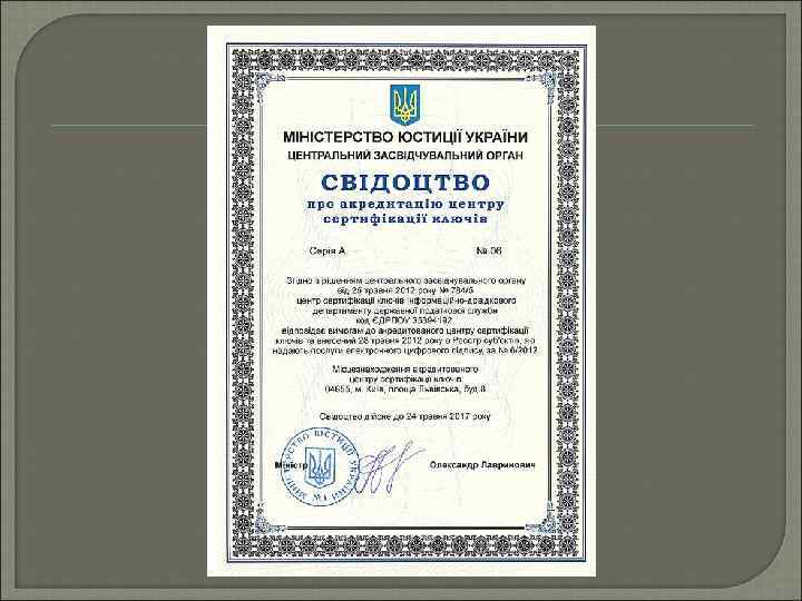 У Центрі сертифікації ключів (далі - ЦСК) реалізовані функції щодо взаємодії ЦСК Держмитслужби з іншими ЦСК в частині встановлення чинності сертифікатів ключів 7. Публічна інформація - це відображена та задокументована будь-якими засобами та на будьяких носіях інформація, що була отримана або створена в процесі виконання суб'єктами владних повноважень своїх обов'язків, передбачених чинним законодавством, або яка знаходиться у володінні суб'єктів владних повноважень, інших розпорядників публічної інформації, нформацією з обмеженим доступом є: конфіденційна інформація; таємна інформація; службова інформація.
