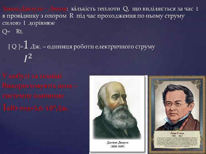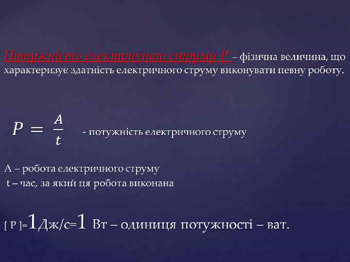 Робота електричного струму А – фізична величина, що характеризує зміну електричної енергії струму – перехід її в інший вид. A=q. U=UІt - робота електричного струму де: q – заряд, що пройшов через поперечний переріз провідника за час t, U – електрична напруга на ділянці кола, I – сила струму в ній.