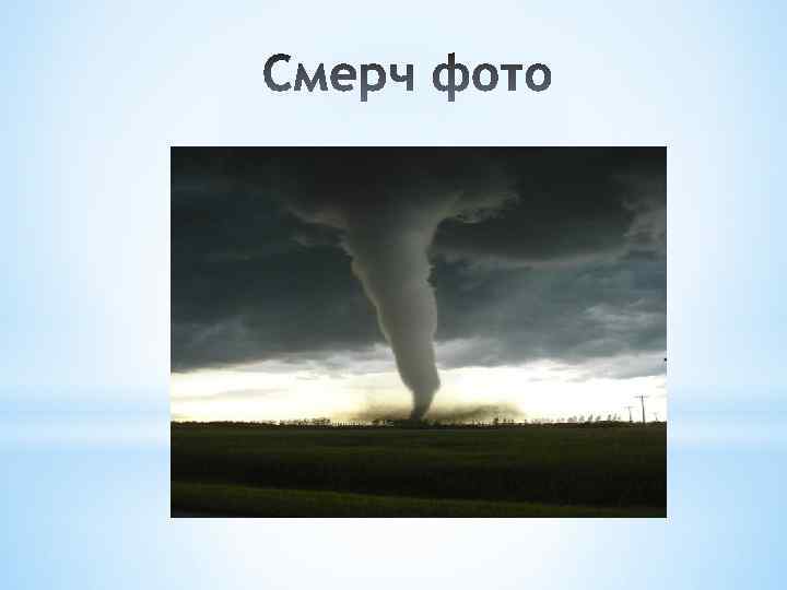 При ураганах ширина зоны катастрофических разрушений достигает нескольких сотен километров (иногда тысячи км. ). Ураган длится 9 12 дней, (буря - от нескольких часов до нескольких суток, ширина фронта при буре - несколько сот километров), причиняя большое количество жертв и разрушений. Поперечный размер тропического циклона (называемого также тропическим ураганом, тайфуном) значительно меньше - всего несколько сот километров, высота его - до 12 -15 км. Давление в ураганах падает намного ниже, чем во внетропическом циклоне. При этом скорость ветра достигает 400 -600 км/час. В сердцевине смерча давление падает очень низко, поэтому смерчи "всасывают" в себя различные, иногда очень тяжелые предметы, которые переносят затем на большие расстояния. Люди, оказавшиеся в центре смерча, погибают.