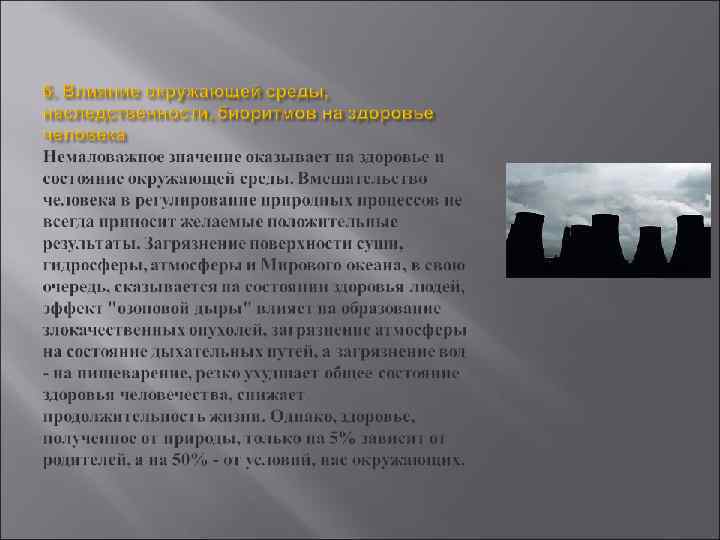 Физическое здоровье - это естественное состояние организма, обусловленное нормальным функционированием всех его органов и систем. Если хорошо работают все органы и системы, то и весь организм человека (система саморегулирующаяся) правильно функционирует и развивается. ·
