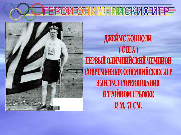 Греческий спортсмен Милтиадес Гоускос серебряный призер Игр I Олимпиады в толкании ядра Венгерский пловец Альфред Хайош победитель в плавании на дистанциях 100 и 1200 м вольным стилем