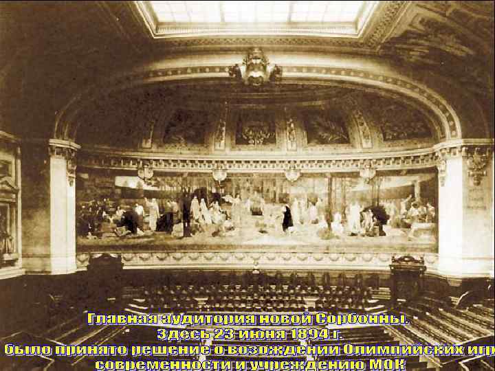 МОМЕНТ РЕЧИ ПЬЕРА ДЕ КУБЕРТЕНА О ВОЗРОЖДЕНИИ ОЛИМПИЙСКИХ ИГР И СОЗДАНИИ МЕЖДУНАРОДНОГО ОЛИМПИЙСКОГО КОМИТЕТА