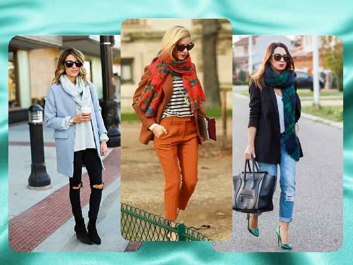 Функции шарфа v. Модный элемент одежды, дополняющий образ. Шарф придаёт образу новый оттенок, целостность, акцент. v. Аксессуар для утепления.