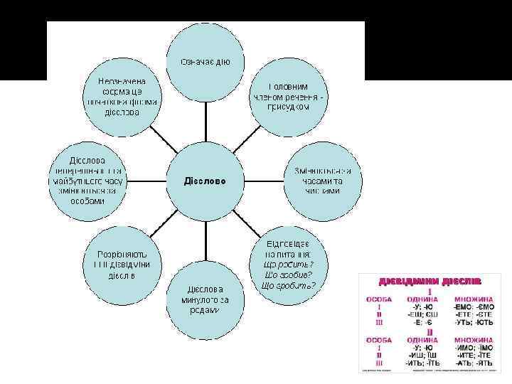 Дієвідміни І ДІЄВІДМІНА 3 особа Однини множини -е (є) -уть (-ють) За основою інфінітива: За складовою основою З суфіксами –ува, ну, і, а, що не випадають в особових формах: грати; З основою –оро , оло: колоти; Дієслова : хотіти, іржати, ревівти, сопіти, гудіти ІІ ДІЄВІДМІНА 3 особа Однини множини -ить (-Їть) -ать (-ять) З суфіксами –і , -ї, -и , які випадають в особових формах : клеїти; З суфіксом –а, після шиплячих та і : стояти; Дієслова спати, бігти та ін.