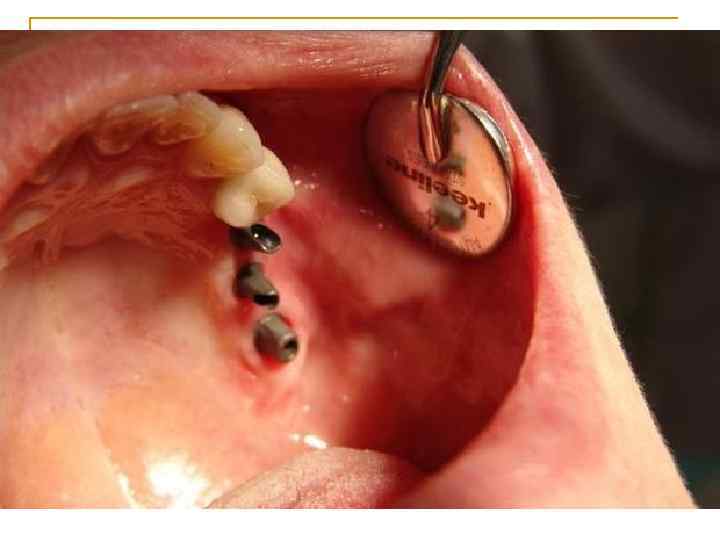 Местные противопоказания: n n n n 1) степень атрофии костной ткани альвеолярного гребня или индивидуальные особенности строения челюстных костей, препятствующие установке внутрикостных имплантатов; 2) нарушения структуры костной ткани, новообразования и воспалительные процессы в зоне вмешательства; 3) генерализованный пародонтит (агрессивное течение, абсцедирование, быстро прогрессирующая форма у молодых пациентов, идиопатические заболевания пародонта с прогрессирующим лизисом кости); 4) патологическая стираемость твердых тканей 'зубов со снижением высоты прикуса; 5) деформации челюстей, в том числе зубоальвеолярное удлинение с уменьшением межальвеолярного расстояния до 5 мм и менее; 6) рецидивирующие заболевания слизистой оболочки полости рта; 7) заболевания височнонижнечелюстного сустава (ВНЧС); 8) неудовлетворительный уровень гигиены полости рта.