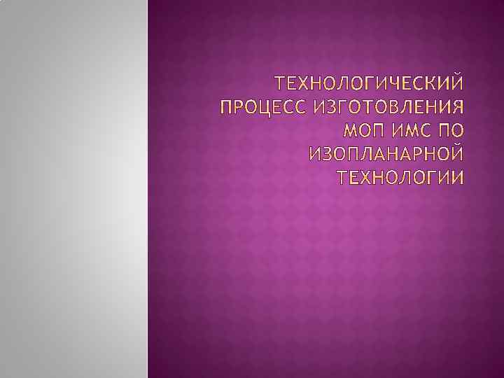 При изготовлении ИМС по этой технологии структуры МОП-транзисторов изолируют слоем диоксида кремния. Создание структур самих МОП-транзисторов основано на использовании толстооксидной самосовмещенной технологии. Причем все их активные области (исток, канал, поликремниевый затвор, диффузионные проводники) формируют на мезаобластях, окруженных слоем диоксида кремния и выступающих над поверхностью подложки.