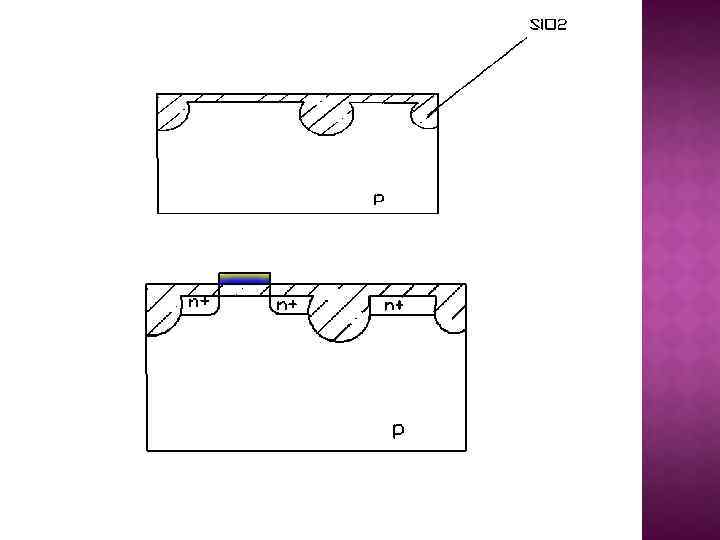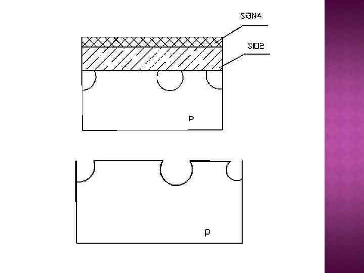 Сначала поверхность исходных кремниевых подложек р-типа покрывают толстым слоем диоксида кремния, поверх которого наносят слой нитрида кремния, и фотолитографией, а также селективным травлением формируют мезаобласти. Затем в вытравленные в кремниевых подложках канавки проводят на небольшую глубину диффузию атомов акцепторной примеси.