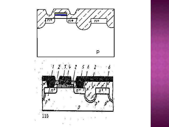 Селективное легирование повышает удельную плотность заряда в приповерхностных слоях, увеличивая пороговое напряжение паразитных МОПтранзисторов. При термическом окислении поверхность вытравленных канавок покрывают слоем диоксида кремния. Следует отметить, что для формирования мезаобластей, проведения термического окисления и селективного легирования необходим только один процесс фотолитографии.