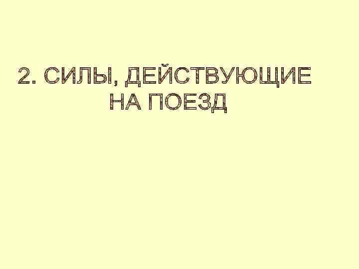 – 1) В тяговых расчетах рассматриваются и изучаются три основные силы, действующие вдоль линии движения поезда, которые измеряются в кгс или в Н: Сила тяги, , кгс. Источником является локомотив, сила управляемая и всегда направлена в сторону движения поезда, т. е. принимается со знаком «+» . 2) Силы сопротивления (основные и дополнительные), , кгс. Возникают в результате взаимодействия с внешней средой. Сила является неуправляемой, но воздействовать на нее можно. Может быть как положительной, так и отрицательной ( «+» и «‑» ). Основное сопротивление движению, Wо, обусловлено: трением в подшипниках, трением качения, сопротивлением воздушной среды. Дополнительное сопротивление движению возникает, если поезд следует: по уклону (ωi) по кривой (ωr). 3) Сила торможения , , кгс. Источником являются тормозные устройства локомотива и вагонов. Сила управляемая, действует против движения поезда и принимается со знаком «‑» .