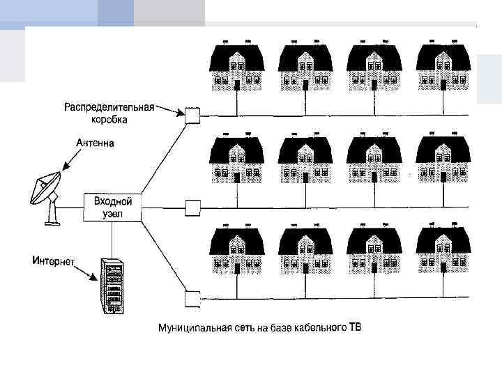 Муниципальные сети объединяют компьютеры в пределах города. Самым распространенным примером муниципальной сети является система кабельного телевидения. Она стала правопреемником обычных антенных телесетей в тех местах, где по тем или иным причинам качество эфира было слишком низким. Общая антенна в этих системах устанавливалась на вершине какого-нибудь холма, и сигнал передавался в дома абонентов.