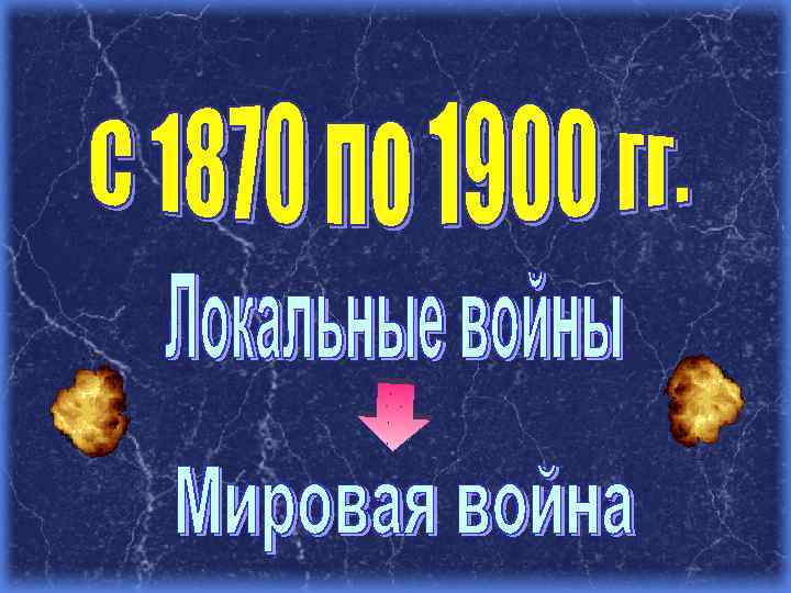 Ускорение темпов развития стран, позднее приступивших к индустриализации Завершение раздела мира во второй половине XIX века Создание колониальной системы, эксплуатация зависимых стран Развитие экономики, рост конкурентоспособности этих государств в мире Стремление стран «опоздавших» к прежнему разделу мире, к его переделу Рост слоев населения (буржуазия, интеллигенция, военные) стремящихся к независимости Изменение экономического и военного статуса держав Активизация их колониальной политики Подъем антиколониального движения народов зависимых стран
