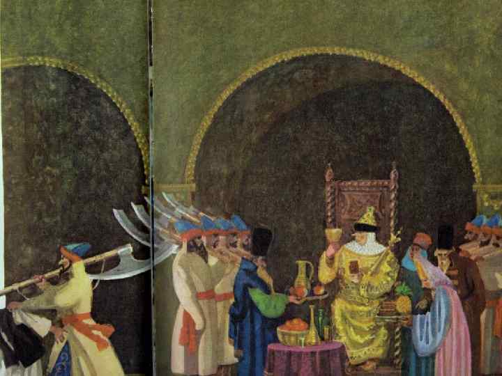 Старичок отправился к морю, (Почернело синее море. ) Стал он кликать золотую рыбку. Приплыла к нему рыбка, спросила: «Чего тебе надобно, старче? » Ей с поклоном старик отвечает: «Смилуйся, государыня рыбка! Опять моя старуха бунтует: Уж не хочет быть она дворянкой, Хочет быть вольною царицей» . Отвечает золотая рыбка: «Не печалься, ступай себе с богом! Добро! будет старуха царицей!» Старичок к старухе воротился. Что ж? пред ним царские палаты. В палатах видит свою старуху, За столом сидит она царицей, Служат ей бояре да дворяне, Наливают ей заморские вины; Заедает она пряником печатным; • Вкруг ее стоит грозная стража, На плечах топорики держат. Как увидел старик, — испугался! В ноги он старухе поклонился, Молвил: «Здравствуй, грозная царица! Ну, теперь твоя душенька довольна» . На него старуха не взглянула, Лишь с очей прогнать его велела. Подбежали бояре и дворяне, Старика взашеи затолкали. А в дверях-то стража подбежала, Топорами чуть не изрубила. А народ-то над ним насмеялся: «Поделом тебе, старый невежа! Впредь тебе, невежа, наука: Не садися не в свои сани!»