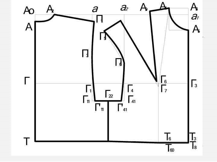 Особенности построения: o Длина плечевых линий спинки переда естественная или сокращенная на 1 -2 см o Плечевая линия в сторону не переводится
