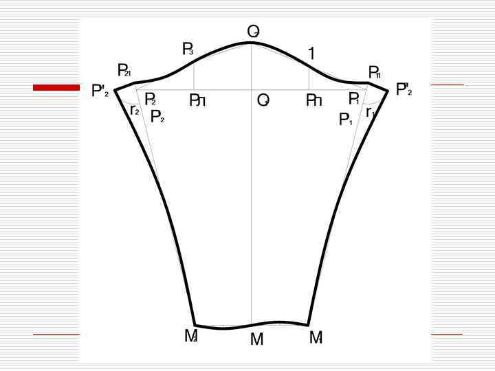 Дополнительное расширение переда и спинки на уровне точек П 3 и П 6 o. Если дополнительное углубление до 5 см П 3 П 31=П 6 П 61= 0, 7 -1, 1 см o. Если дополнительное углубление более 5 см П 3 П 31=П 6 П 61= 1, 0 -1, 5 см