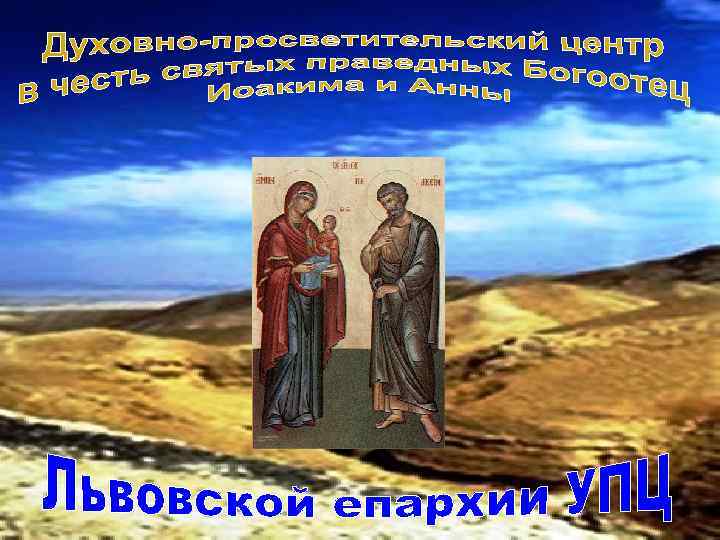 1 марта 2012 года по благословении Правящего Львовской епархией Украинской Православной Церкви создан Духовно-просветительский центр в честь святых праведных Богоотец Иоакима и Анны, который функционирует при отделе по благотворительности и социального служения Львовской епархии УПЦ Центр стал первым епархиальным центром защиты материнства, который создан на призыв Святейшего Патриарха Московского и всия Руси Кирилла 1. 2. 3. 4. http: //ruskline. ru/news_rl/2011/03/09/prezentaciya_pervogo_eparhialnogo_centra_zawity_materinstva/ http: //www. miloserdie. ru/index. php? ss=4&s=19&id=14753 http: //www. verav. ru/common/message. php? table=news&num=18218 http: //www. russiaprolife. ru/content/pervymi-na-prizyv-svyateyshego-otkliknulis-vo-lvove