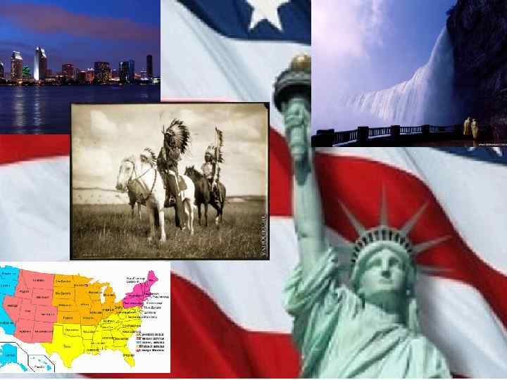 О стране: Соединённые Штаты Америки - государство в Северной Америке. Площадь - 9 518 900 км² (четвёртое место в мире по территории). Население - более 309 млн. человек (третье место). Столица город Вашингтон. Соединённые Штаты граничат с Канадой, Мексикой, Россией. Омываются Тихим океаном, Атлантическим океаном. Административное деление: 50 штатов и федеральный округ Колумбия, в подчинении США также находится ряд островных территорий. США были образованы в 1776 году при объединении тринадцати британских колоний, объявивших о своей независимости. • Экономика: в настоящее время крупнейшая в мире ($14, 2 трлн. ). США обладают мощными вооружёнными силами, в том числе крупнейшим военно- морским флотом, имеют постоянное место в Совете • Безопасности ООН, государство-учредитель Североатлантического альянса. США располагают вторым по совокупной мощности ядерным потенциалом на Земле. • •