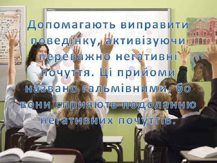 Ця група прийомів коригує поведінку учнів на основі виникнення позитивних почуттів. Вони сприяють розвитку нових позитивних якостей.