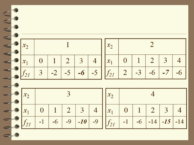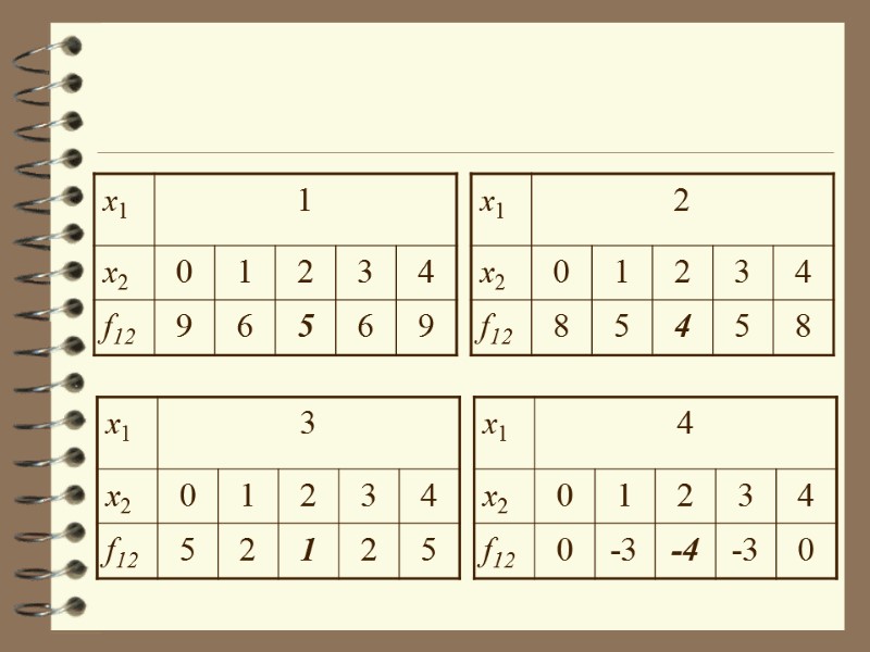 Рішення: гарантований результат визначається за допомогою таблиць досить просто за принципом max min: Для функції f12(x1,x2)