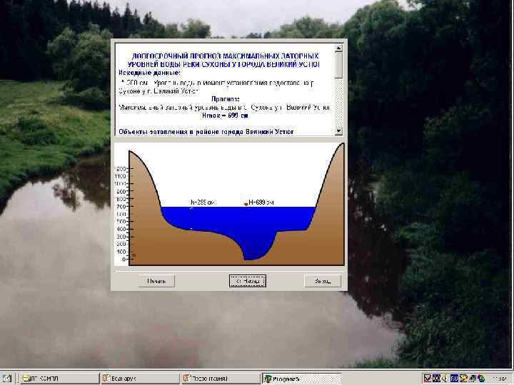 Рабочее окно ПК для оценки затопления поймы Оки