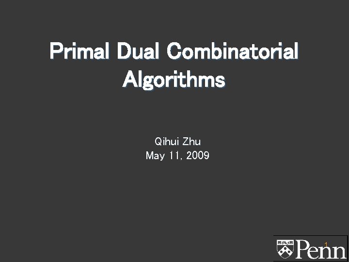 Primal Dual Combinatorial Algorithms Qihui Zhu May 11, 2009 1