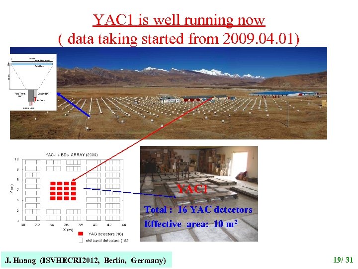 YAC 1 is well running now ( data taking started from 2009. 04. 01) YAC 1 Total : 16 YAC detectors Effective area: 10 m 2 J. Huang (ISVHECRI 2012, Berlin, Germany) 19/ 31