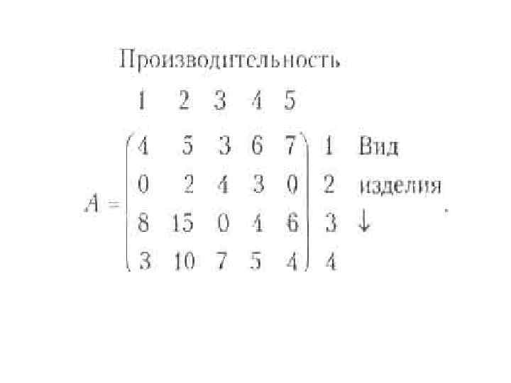 Каждый столбец этой матрицы соответствует дневной производительности отдельного предприятия по каждому виду продукции. Следовательно, годовая производительность j-ro предприятия по каждому виду продукции получается умножением j-ro столбца матрицы А на количество рабочих дней в году для этого предприятия(i=1, 2, 3, 4, 5). Таким образом, годовая производительность каждого предприятия по каждому из изделий описывается матрицей
