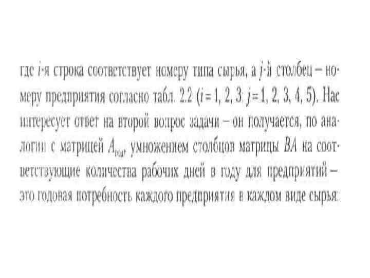 Дневной расход по типам сырья на предприятиях описывается произведением матрицы В на матрицу А: