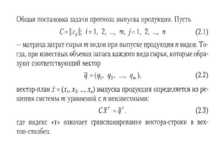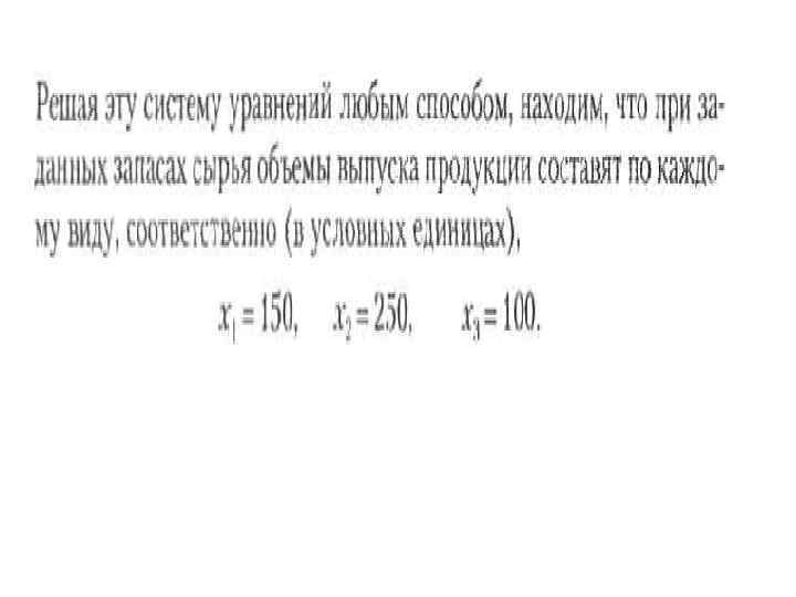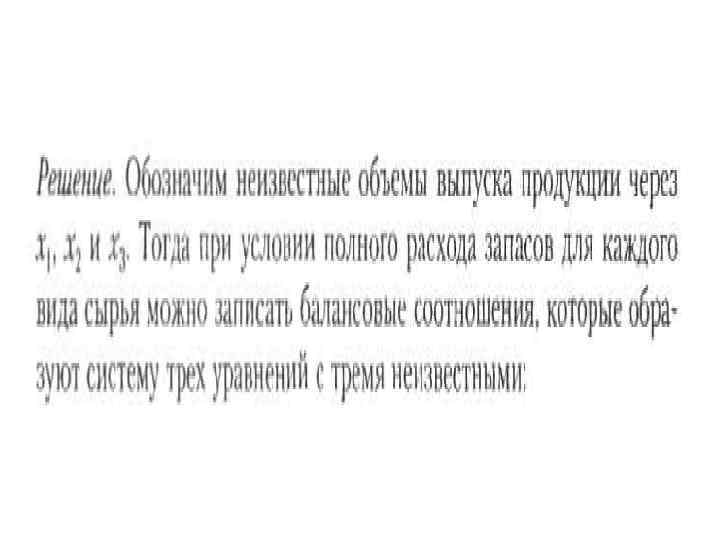 Использование систем линейных уравнений В этом разделе мы рассмотрим задачи, приводящие к составлению и решению систем линейных алгебраических уравнений на основе прогноза выпуска продукции по известным запасам сырья.